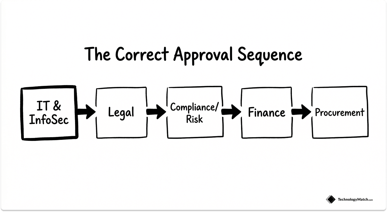 IT sign-off should come first, not last. When IT reviews a contract after legal has already executed it, any security requirements that were missed become change requests against a live agreement.